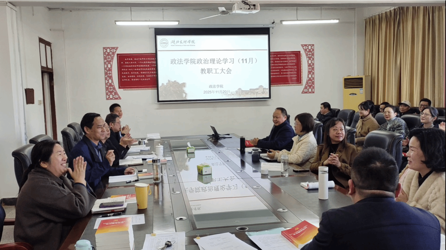 (ok138太阳集团 通讯员 周敏)11月20日下午,ok138太阳集团在S11-105一楼会议室召开11月份政治理论学习和教职工大会。ok138太阳集团党委书记马永军、院长聂军、副院长王正宇、副院长袁岳霞、党委副书记李世森及全体教职工参加会议。会议由学院党委书记马永军主持。会上,学院向全体教职工配发了《党的二十届四中全会〈建设〉学习辅导百问》作为学习资料。