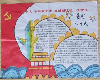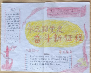 同学们以“喜迎二十大,永远跟党走,奋进新征程”为主题,设计了各种各样的图案,表达了他们对党坚定的信仰,同学们谈到中国共产党的百年历史既是一部波澜壮阔的革命史、一部艰苦卓绝的斗争史,也是一部可歌可泣的英雄史、一部开天辟地的发展史。党的历史有封存的先辈记忆,有丰功伟绩,有光荣传统,有创新理论,有经验总结,学党史,既要走好来时的路,也要走好未来的路。永远跟党走,这是经历无数次挫折后,新中国得出的结论。中国共产党致力于为人民服务,人民永远放在第一位。香港澳门的回归再一次证明了中共的实力,一国两制则体现了中共保证领土完整性的决心。如今,中国共产党已成为世界第一大政党。这是足以证明中共受全世界人民的爱戴。