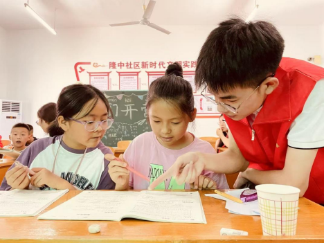 张缜同学在帮助小朋友完成作业“当然也会有很多挫折,一个团队任务如何分配、怎么对接志愿服务地点,这些问题都是不小的考验。”张缜说,“但换个方面去想,正因为这些挫折才有了今天的我。”为了更好地开展志愿服务,张缜同学积极参加学院组织的志愿者培训大会,来提升自己的能力。在空余时间,他经常和伙伴一起探讨志愿服务活动的开展流程,他也积极和老师沟通,在老师的帮助下完善工作。