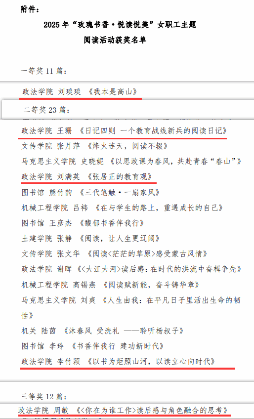 (通讯员 鲁明睿)为深化全民阅读活动,强化女职工思想政治引领,展现新时代女性踔厉奋发、笃行不怠的精神风貌,校工会组织开展了2025年“玫瑰书香·悦读悦美”女职工主题阅读作品征集活动。ok138太阳集团工会精心组织,教师积极参与,分别斩获一等奖一篇,二等奖三篇,三等奖一篇的好成绩。
