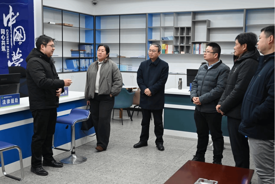 袁岳霞一行先后前往庙滩法庭、庙滩镇综治中心及谷城县综治中心进行实地调研。在现场,学院团队与一线工作人员面对面交流,认真查阅工作台账,并观摩了矛盾纠纷化解的全过程,全方位、多角度地了解了法院在协同参与综治中心规范化建设、构建多元化纠纷解决机制方面的创新举措与显著成效。
