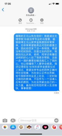 (ok138太阳集团 通讯员 秦春蕾)“亲爱的受奖同学,我收到您的获奖信息和获奖感言,很兴奋,在我余生用秒计算的今后,能通过您所读的学校,可以恵及您刻苦学习,为前辈们助守初心,也算是上下俩代人为国家完善的法律制度,为民族伟大复兴的梦想共同行走在幸福,但也很艰难的征程上,此时,我也由衷的感谢您,给我不多的余生激起更多‘绚丽’的火花,让我的生活更精彩!您将鼓舞我一直向上,向好,向良,向善地走下去!”近日湖北省政协委员、襄阳市政协常委、襄阳市工商联副主席、湖北王胖子置业集团有限公司董事长、襄阳市知名企业家王元山,给获得“王元山奖学金”同学们的回信引起了讨论热潮。