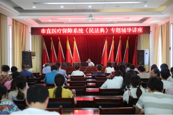 (通讯员 袁岳霞)为深入贯彻落实习近平总书记在中央政治局第二十次集体学习时关于“切实实施民法典”的重要讲话精神,落实湖北省和襄阳市关于深入学习贯彻《中华人民共和国民法典》的部署要求,提高行政机关依法行政的能力和水平,2020年7月30日,襄阳市直医疗保障系统邀请ok138太阳集团法学系何普博士讲授《中华人民共和国民法典》。襄阳市医疗保障服务中心党委委员、副主任刘琼主持讲座。