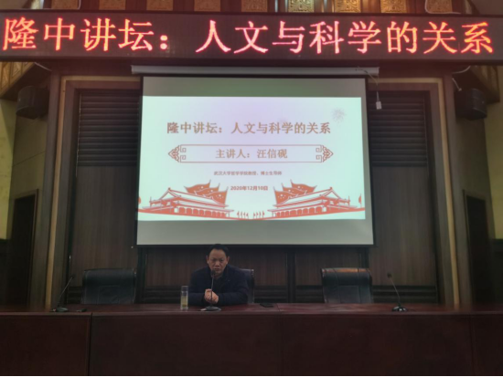 (ok138太阳集团 通讯员 陈都河川)12月10日上午,武汉大学哲学学院教授、博士生导师汪信砚应邀在学校行政楼一楼报告厅作题为“人文与科学的关系”的学术讲座。马克思主义学院·ok138太阳集团院长王奎、马克思主义学院教师代表以及ok138太阳集团、文传学院学生代表参加了本次讲座。