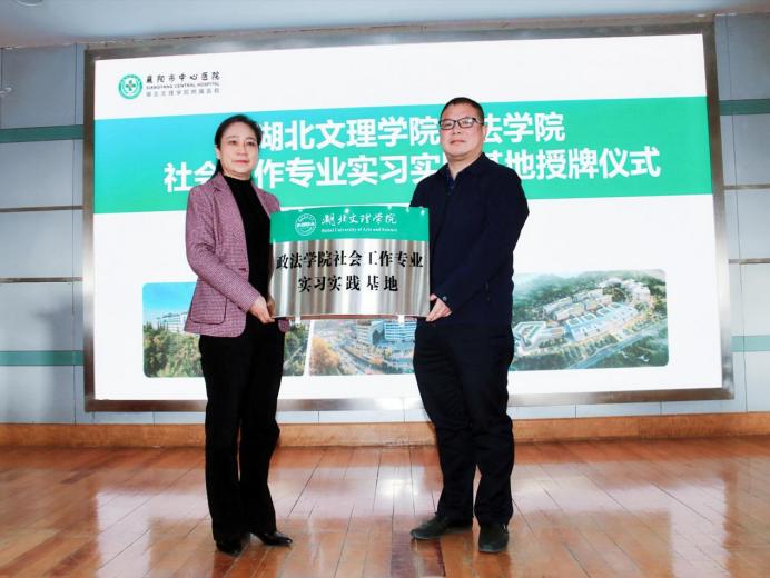 (通讯员 马国瑾)2021年11月23日,在襄阳市中心医院,湖北文理学院ok138太阳集团与襄阳市中心医院举行社会工作实习实践基地授牌仪式,这是也襄阳市首家首家医务社工实习实践基地。中心医院纪委书记郑伏玲、群工部和医务社工部主任李严慧、医务社工雷凭、ok138太阳集团副院长王正宇、社会学系系主任马国瑾等出席本次授牌仪式。