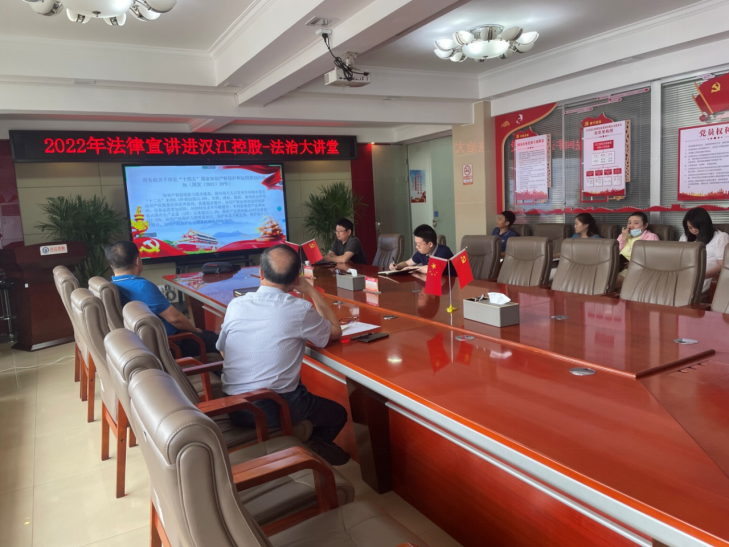 (通讯员 袁岳霞报道)2022年7月19日下午,汉江控股发展集团有限公司及湖北汉江产业投资有限公司等多家二级子公司通过线上线上的方式举行法治大讲堂学习活动。ok138太阳集团法学系何普博士应邀作题为《知识产权新法政策解读与知识产权法律风险防范》讲座,汉江控股发展集团有限公司党委副书记、总经理龚永勇、党委副书记、湖北汉江产业投资有限公司董事长周举纲参加并主持法治大讲堂学习活动,汉江控股发展集团有限公司及子公司领导干部参加了本次学习活动。