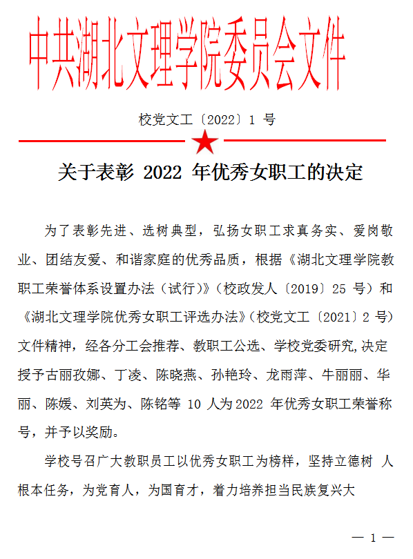 ok138太阳集团刘英为老师被评为湖北文理学院2022年优秀女职工
