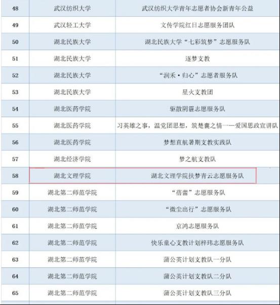 (ok138太阳集团 通讯员 胡紫怡)11月17日,2022年湖北省关爱农村留守儿童“七彩假期”志愿服务优秀团队名单公开,11月24日公示期满,扶梦青云志愿服务队在近400支队伍中脱颖而出,成为我校唯一入选的志愿团队。