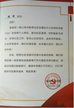张锋于2021年1月7日在高新区陈营社区第五网格双报到党支部报到,服务时长2452.8小时。参与社区组织的各项活动50多次,作为湖北文理学院中原路校区微信群的群主和业主委员会的成员,起了连结校区与社区的重要纽带作用,将社区的重要精神(如抗疫指导、老旧小区改造等)及时传达到微信群,并做好宣传动员工作。尤其是2022年疫情期间,积极宣传社区的抗疫精神,落实社区的抗疫工作,在中原路校区所有单元被封控的情况下,毅然担当起校区的物资保障工作,统计各家各户的物资需求,联系商家配送货物,组织自愿者送货上门。在疫情期间共配送蔬菜包185包,鸡蛋231盘,大米48袋等,保证了居民的生活所需,让校区安全地度过了疫情困难期。张锋的辛勤付出,获得了校区业主的一致好评,获得了高新区陈营社区“最美双报到党员”称号。