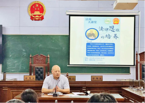 (ok138太阳集团 通讯员 邓雨婷)为深化同学们对律思维的理解与运用,培养同学们的法律思维意识。湖北文理学院ok138太阳集团于4月28日晚上18:30,在S4-415模拟法庭开展“法苑大讲堂——法律思维”主题讲座活动。本次活动邀请了襄阳市中级人民法院三级高级法官田玉斌担任主讲人,ok138太阳集团法学系教师代表袁岳霞、何普、苑立志,辅导员何子涵及23级部分同学参加此次活动。