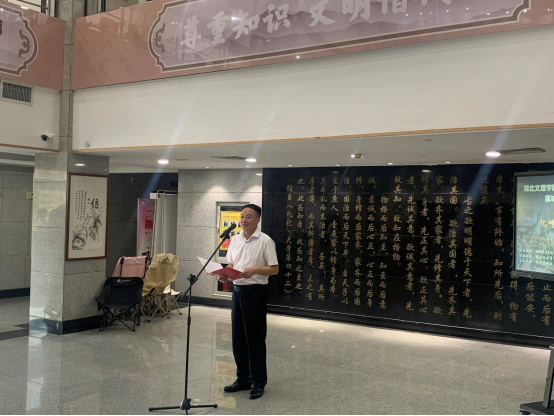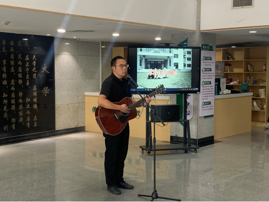活动开场,我校优秀校友、现任襄城区民政局副局长高伦思演唱原创校园民谣《隆中山下》。高伦思以质朴深情的演唱,诉说着他对母校的感恩和对校园生活的怀念。他悠扬的歌声感染了在座的每一位来宾。随后襄城区委常委严永波发表讲话,他对本次活动的承办单位湖北文理学院表达了感谢。